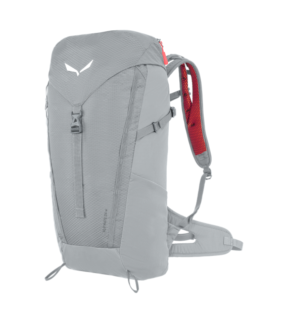 This practical 24l backpack is ideal for day hikes. Our state-of-the-art Dry Back Air system features a suspension back panel for maximum breathability combined with good weight distribution. Fastening straps allow you to perfectly adapt the way the load is attached even on the toughest terrain. The Alp Mate backpack was developed with air circulation technology and 25% less back contact to minimize sweating and keep your back dry. The backpack is made of strong but extremely lightweight fabrics to allow you to preserve as much energy as possible while maintaining comfort thanks to detachable shoulder straps, an ergonomic hip belt and a special women’s anatomical design. The Alp Mate features both top and front openings for quick access to content, plus an integrated rain cape, numerous pockets and points to connect other equipment, such as a hydration system. The Alp Mate 24l backpack is the ideal companion for shorter mountain tours.