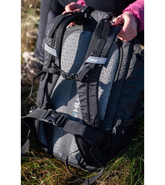 It’s a technical spacer mesh. The mesh is firm, breathable, and highly malleable, which considerably reduces its adherence to your back when you’re sweating. Another advantage is the low weight in relation to the total volume. Added to which it doesn’t absorb moisture, and is perfectly elastic and anti-allergenic.