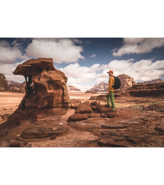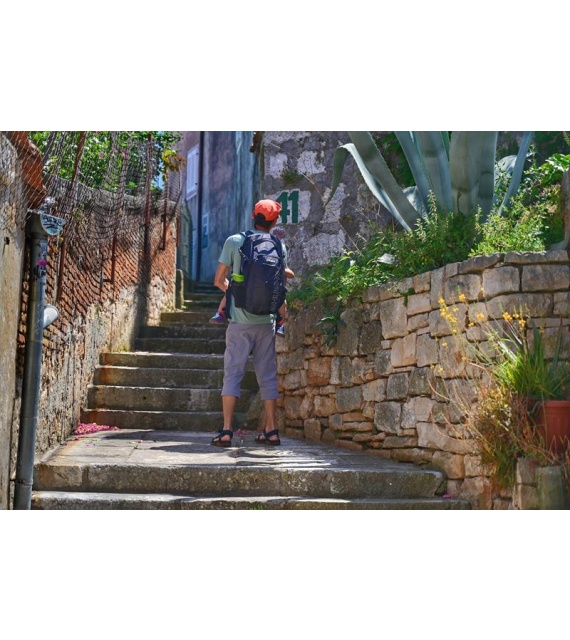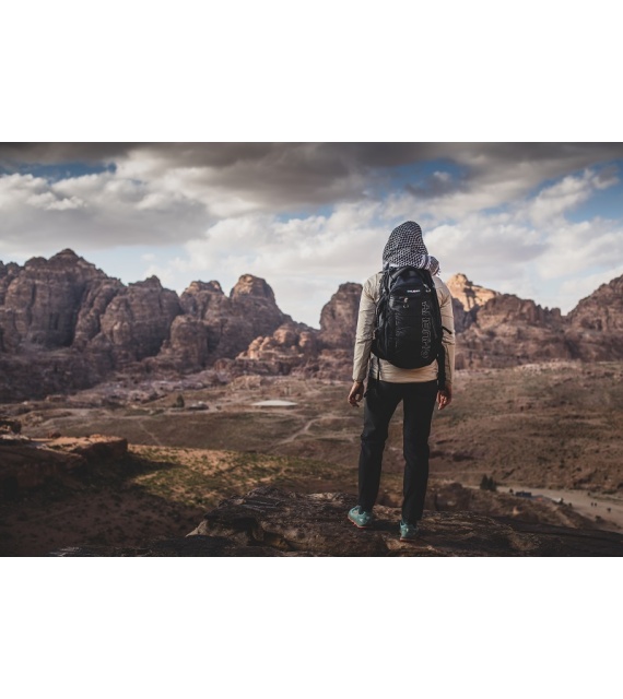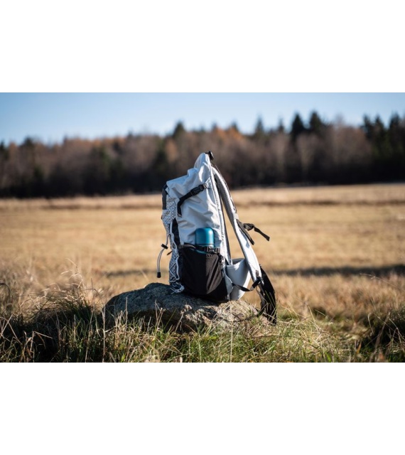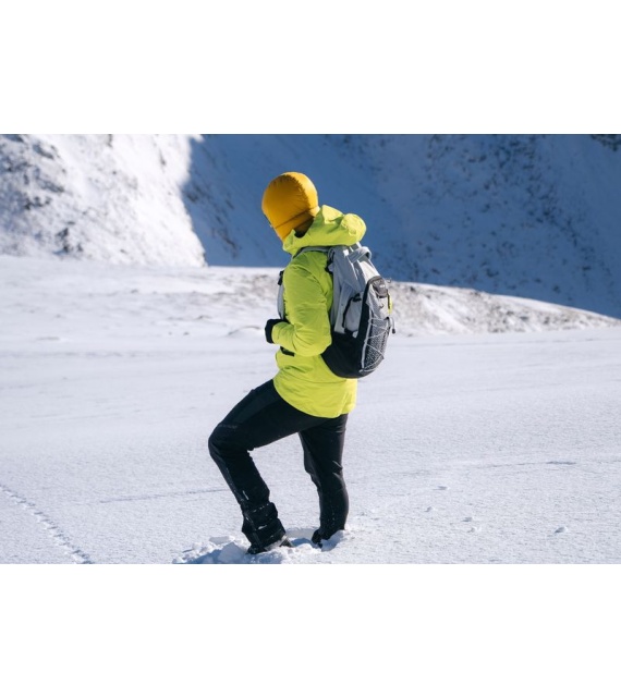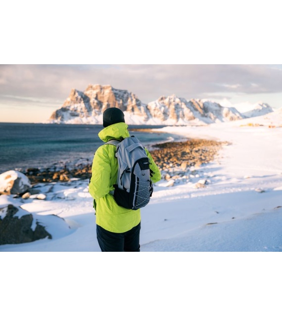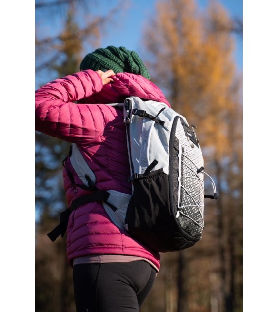 It’s a technical spacer mesh. The mesh is firm, breathable, and highly malleable, which considerably reduces its adherence to your back when you’re sweating. Another advantage is the low weight in relation to the total volume. Added to which it doesn’t absorb moisture, and is perfectly elastic and anti-allergenic.