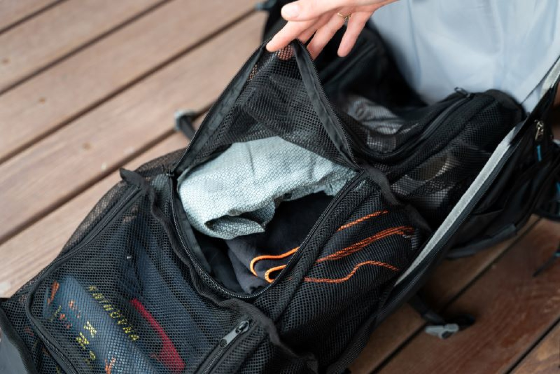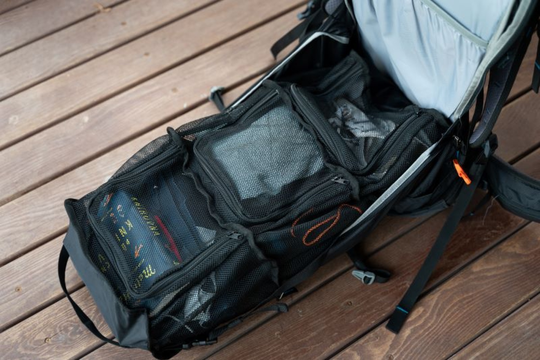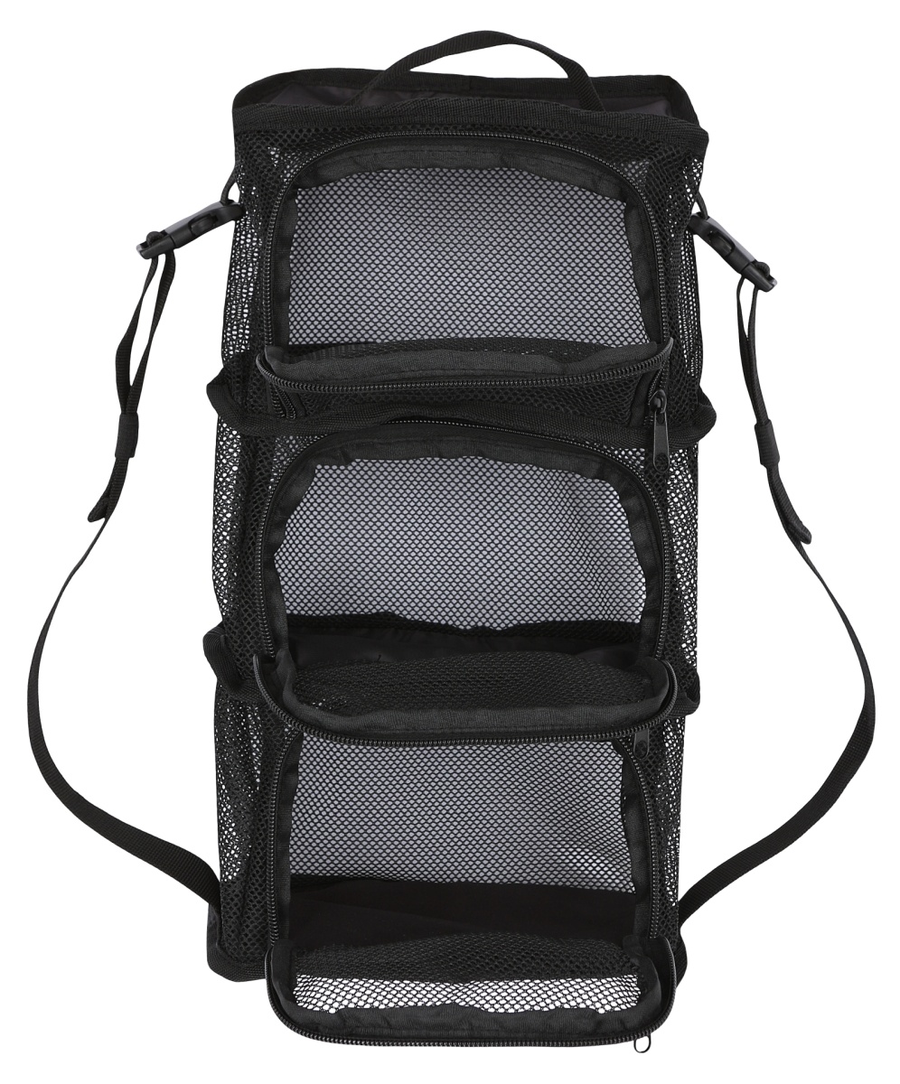 TOWER storage system with its three separate compartments made of breathable mesh keeps your belongings organized. The zippered compartments have sturdy dividers between them. Everything stays in its place and you can keep track of it all.