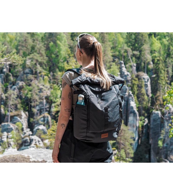 The versatile city backpack Moper 28 l not only meets requirements for functionality and comfort, but is also environmentally friendly. We made it from a recycled material that’s durable and doesn’t harm the environment. The roomy, well-organised inner space includes a system of pockets and provides a secure place to keep a laptop or tablet during your everyday travels through the urban jungle.