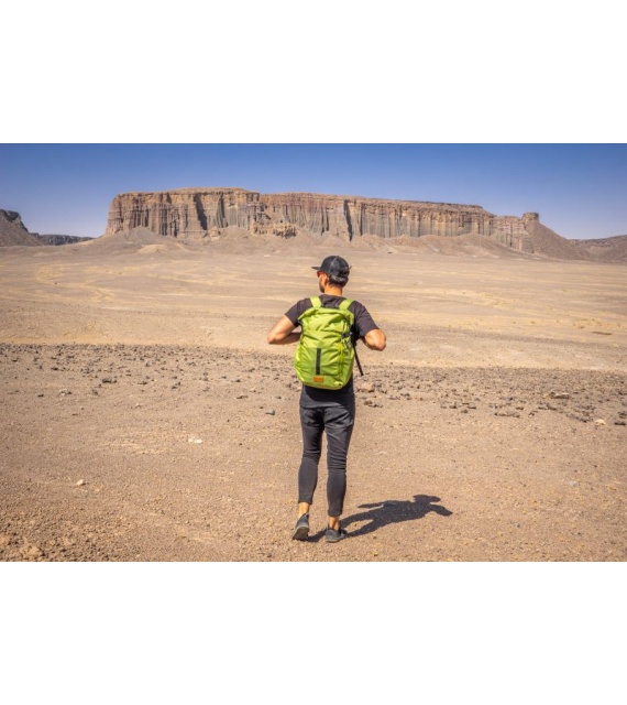 It’s a technical spacer mesh. The mesh is firm, breathable, and highly malleable, which considerably reduces its adherence to your back when you’re sweating. Another advantage is the low weight in relation to the total volume. Added to which it doesn’t absorb moisture, and is perfectly elastic and anti-allergenic.