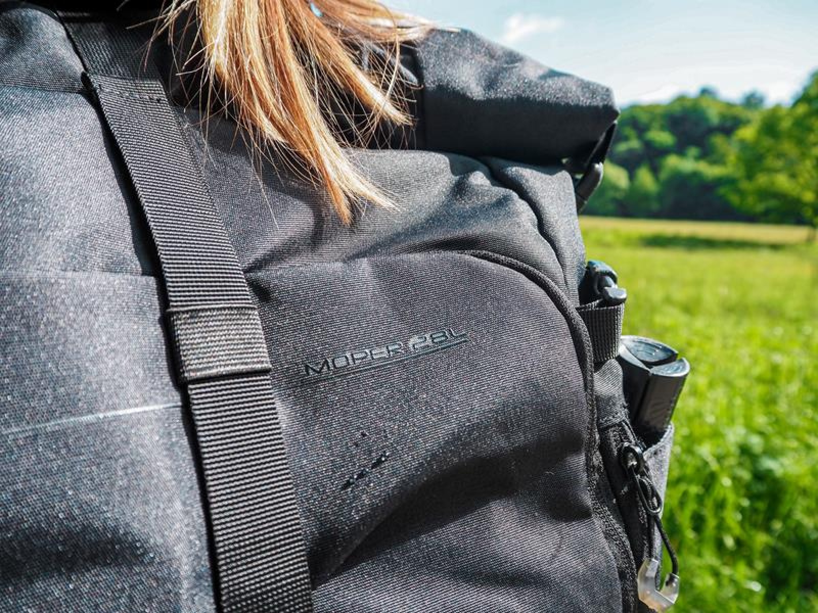 It’s a technical spacer mesh. The mesh is firm, breathable, and highly malleable, which considerably reduces its adherence to your back when you’re sweating. Another advantage is the low weight in relation to the total volume. Added to which it doesn’t absorb moisture, and is perfectly elastic and anti-allergenic.
