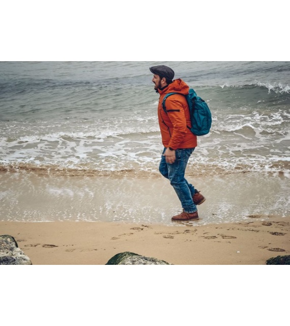 It’s a technical spacer mesh. The mesh is firm, breathable, and highly malleable, which considerably reduces its adherence to your back when you’re sweating. Another advantage is the low weight in relation to the total volume. Added to which it doesn’t absorb moisture, and is perfectly elastic and anti-allergenic.
