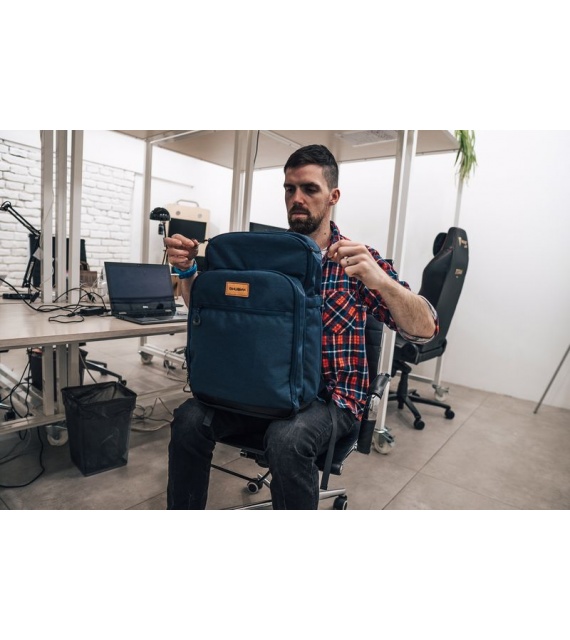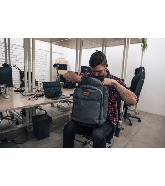 The lightweight Sofer 30 l city backpack not only meets requirements for functionality and comfort, but is also environmentally friendly. We made it from a recycled material that’s durable and doesn’t harm the environment. The roomy, well-organised inner space includes a system of pockets and provides a secure place to keep a laptop or tablet during your everyday travels through the urban jungle.