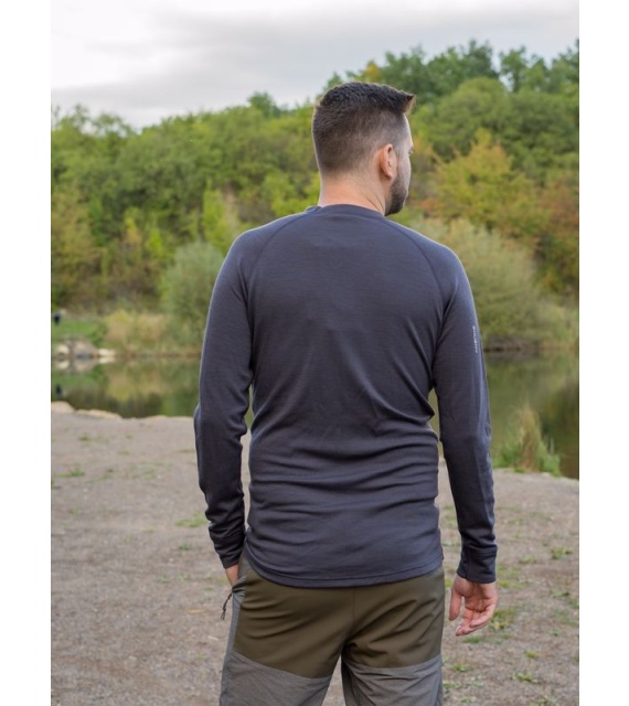A men’s sweatshirt made of soft material containing merino wool, suitable for all outdoor activities from autumn through winter.