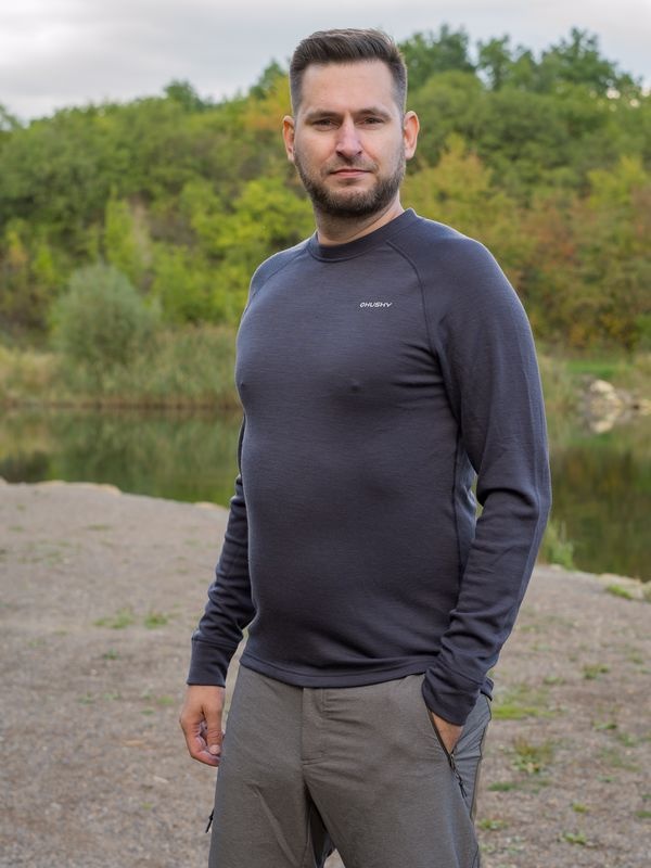 A men’s sweatshirt made of soft material containing merino wool, suitable for all outdoor activities from autumn through winter.