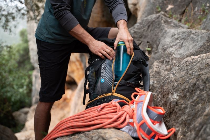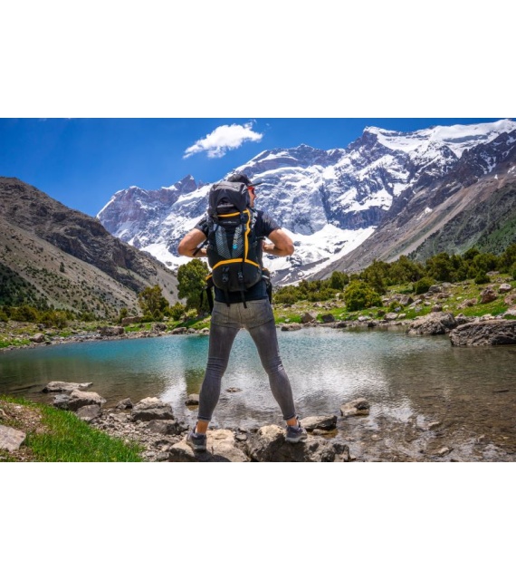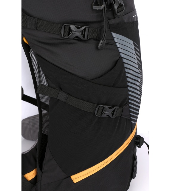 • Features of the Capture backpack: 2 compartments, top entry, front entry, bottom entry, front elastic pocket, front zippered pocket, side elastic pockets for bottle and minor items, side compression straps, chest and lumbar strap, trekking pole loops, rain cover, hydrobag outlet, hydrobag pocket, reflective elements, removable hood pocket, inner side mesh pockets.