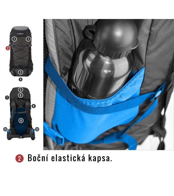 • Features of the Ribon backpack: 2 main compartments with side access to the backpack; elastic drawstring on the front; chest strap; side and bottom compression straps; holders for skis or other gear; height-adjustable top lid with pocket; removable top lid that may be used as a bum bag; zippered side pockets, elastic side pockets; preparation for hydrobag; rain cover; reflective elements; whistle.