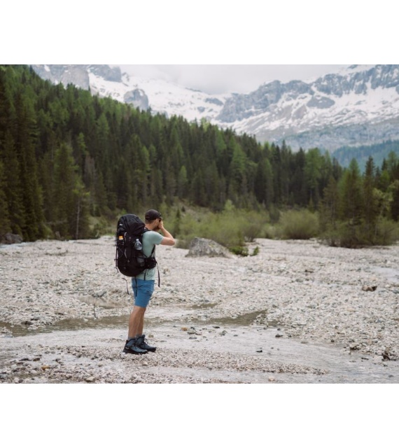 It’s a technical spacer mesh. The mesh is firm, breathable, and highly malleable, which considerably reduces its adherence to your back when you’re sweating. Another advantage is the low weight in relation to the total volume. Added to which it doesn’t absorb moisture, and is perfectly elastic and anti-allergenic.