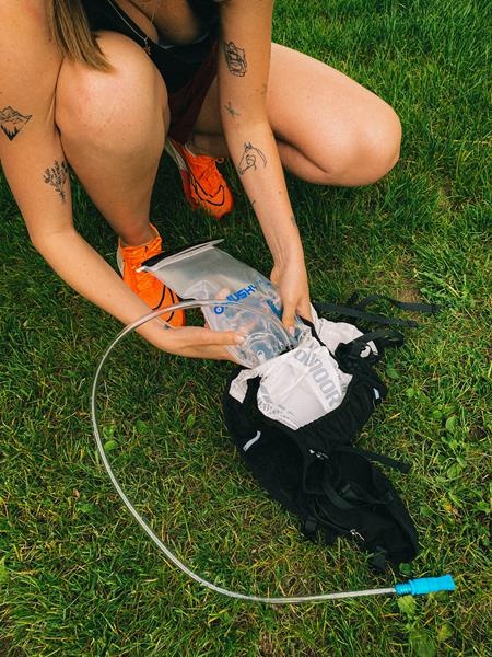 A hydration bladder to carry essential liquids comfortably placed in your backpack. The top-filling design with a tight cap makes refilling much easier.