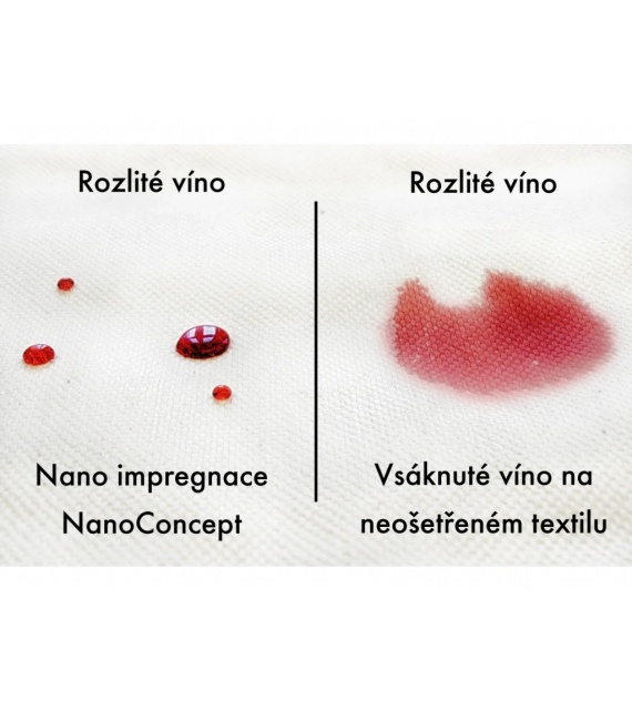 Thanks to the extremely repellent effect of nano-impregnation, it prevents moisture penetration, stains from coffee, red wine, grease - simply all dirt. Moreover, cleaning the impregnated material has never been easier - just a cloth and water!