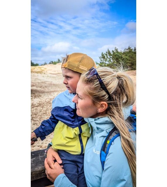 A kids’ functional hardshell jacket with a membrane, suitable for challenging conditions as well as for traditional hiking.