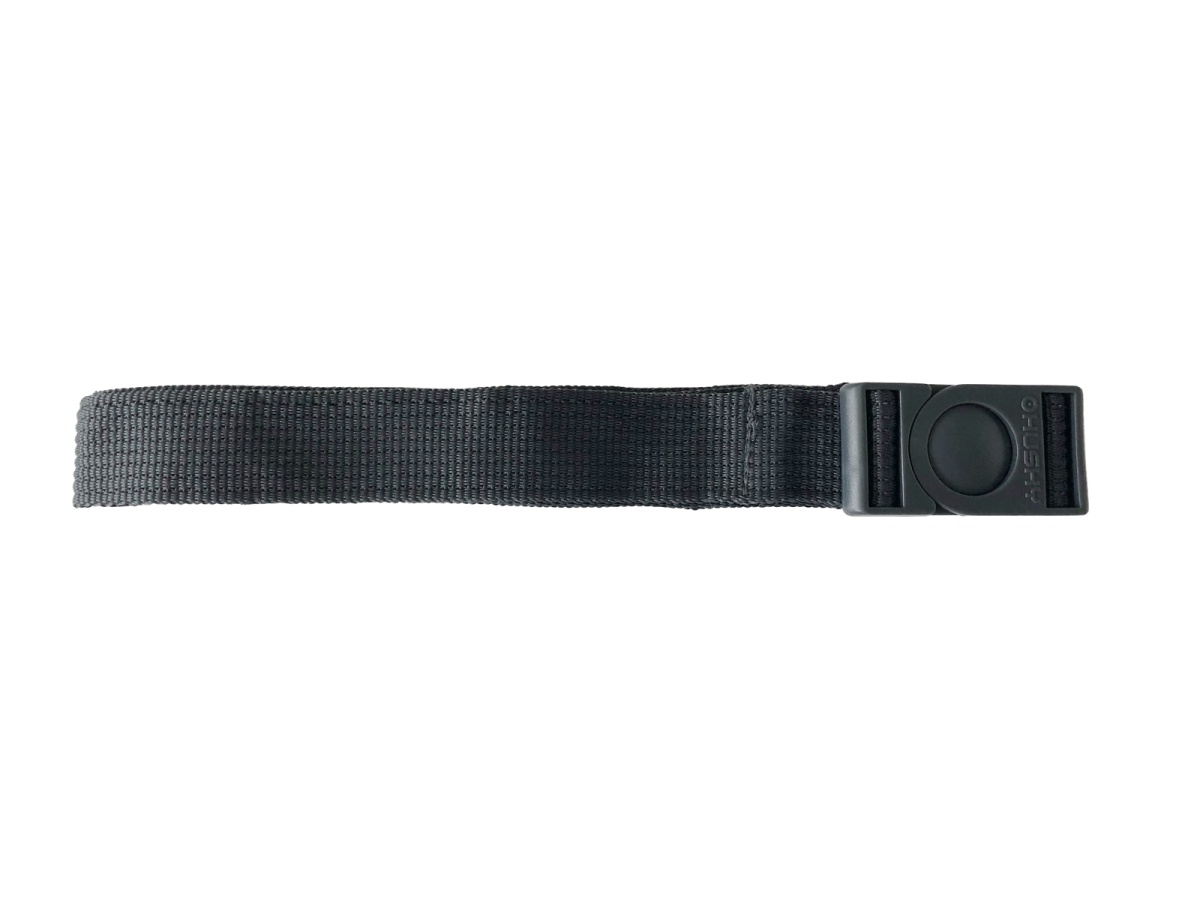 Universal sports belt with a plastic buckle in a minimalist grey design for use by men and women in various outdoor activities.