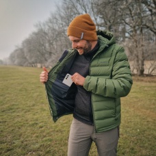 A warm and water-resistant men’s jacket with a high-quality duck feather filling, intended for everyday wear as well as winter outdoor activities.