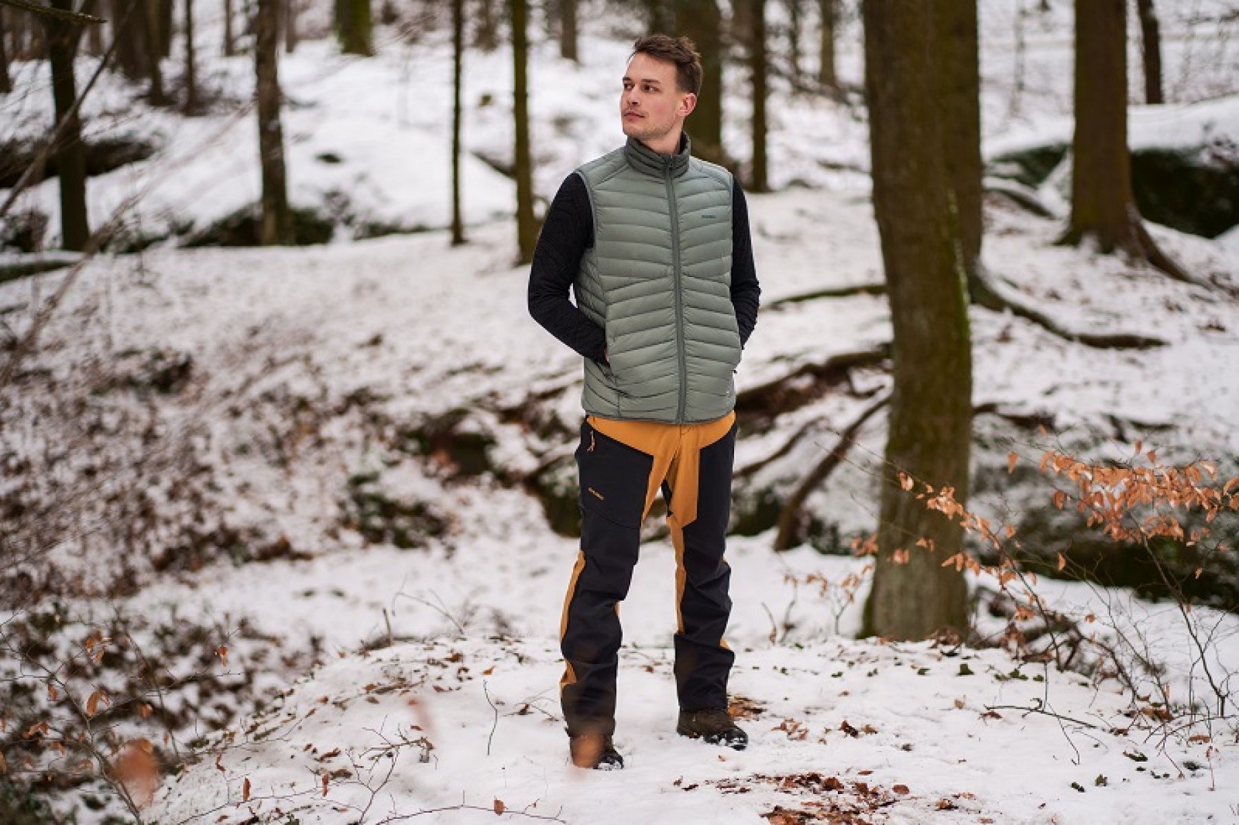 Take the ultra-lightweight, waterproof Dresles M outdoor vest with you on a trip to the great outdoors. It’s easy to pack in a small pocket and keep handy for when you need it. We used high-quality duck feathers for the inner filling, which provides excellent thermal insulation. Thanks to the water-repellent DWR treatment, it is also suitable for demanding conditions during bad weather.