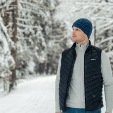 A light, men’s, zip-up gilet suitable for hiking and other outdoor activities on colder days.