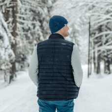 An ultralight men’s down zip-up gilet suitable for various outdoor activities on colder days