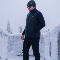 A light, men’s, zip-up gilet suitable for hiking and other outdoor activities on colder days.