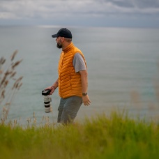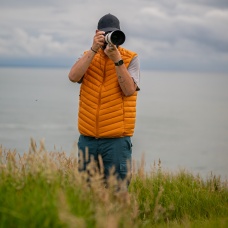 A light, men’s, zip-up gilet suitable for hiking and other outdoor activities on colder days.