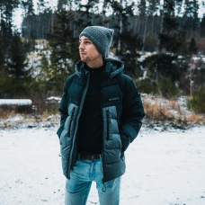 A warm men’s jacket with a high-quality duck feather filling, intended for everyday wear as well as winter outdoor activities.
