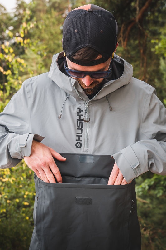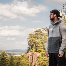 Highly functional men’s jacket with a kangaroo pocket suitable for year-round use for outdoor activities and in demanding conditions.