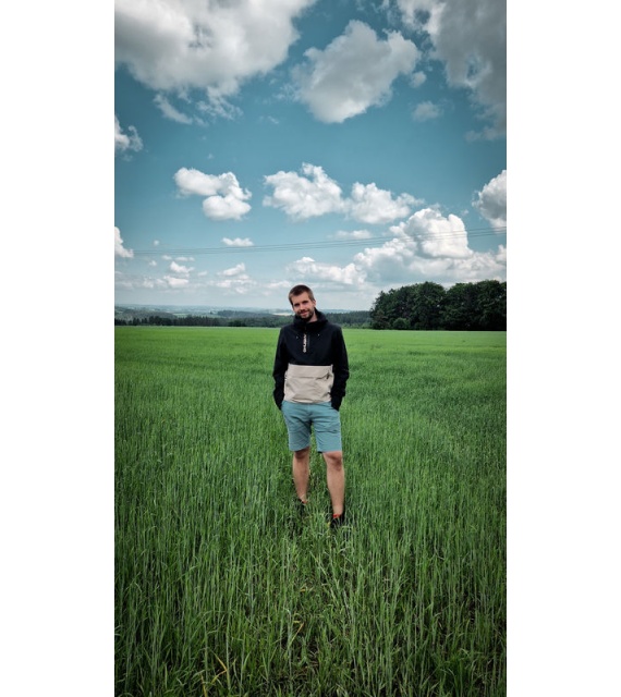 Highly functional men’s jacket with a kangaroo pocket suitable for year-round use for outdoor activities and in demanding conditions.