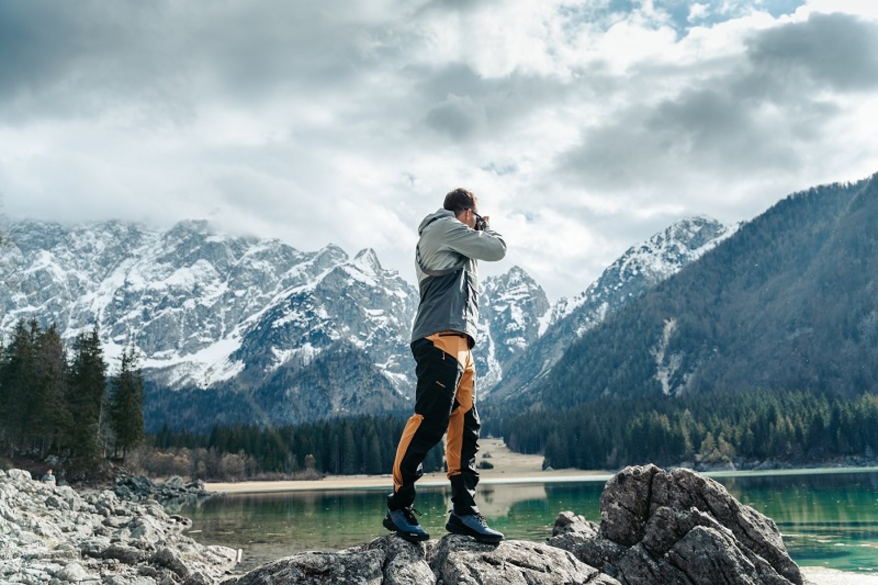 Multifunctional men’s outdoor jacket with hood, for year-round use in demanding conditions, worn both in the countryside for hiking and in the city.