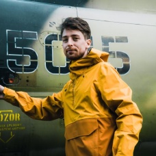 Multifunctional men’s outdoor jacket with hood, for year-round use in demanding conditions, worn both in the countryside for hiking and in the city.
