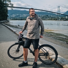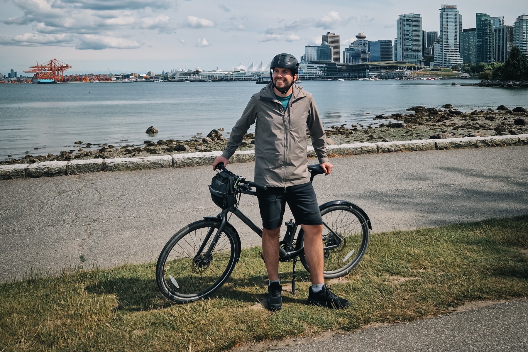 A men’s hardshell membrane coat for everyday wear around town and for hiking in the spring and summer.