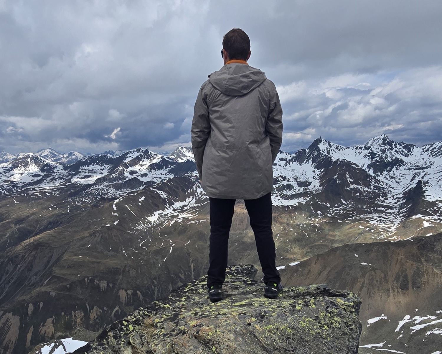 A men’s hardshell membrane coat for everyday wear around town and for hiking in the spring and summer.