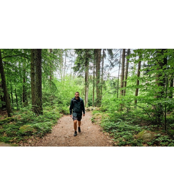 A versatile men’s hardshell coat with a membrane, suitable for traditional hiking, even in challenging conditions, in spring and summer.