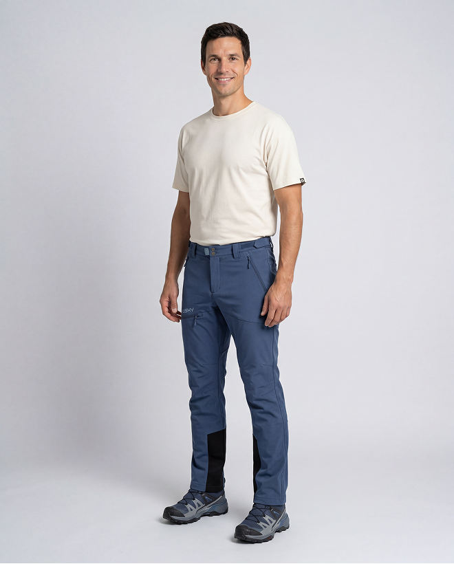 You can confidently wear the thicker, durable men's Kabuki M outdoor pants made from technical fabric for high-mountain trekking in challenging conditions. The breathable material and sophisticated cut allow for comfortable movement even during all-day wear. For waterproofing, the Husky Tech Stretch Plus membrane with a 20,000 water column rating is used, which, combined with a quality DWR treatment, will keep you dry and warm.