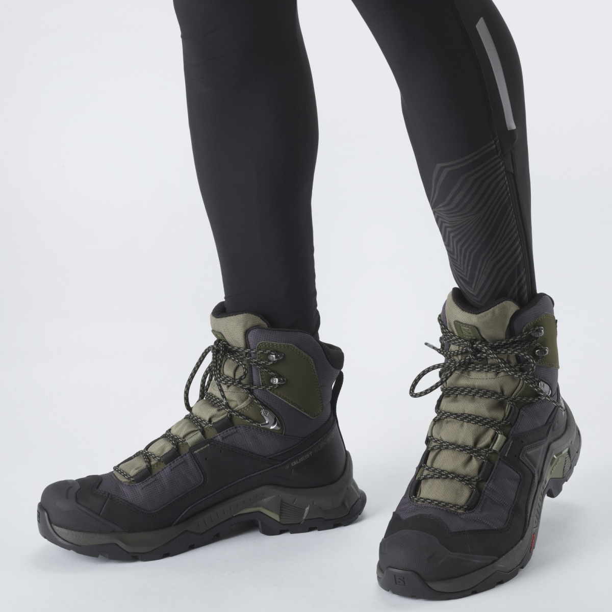 Men's Quest Element Gore-Tex hiking boots from Salomon, made from high-quality nubuck leather, offer high grip thanks to the Contagrip sole and a waterproof Gore-Tex membrane.