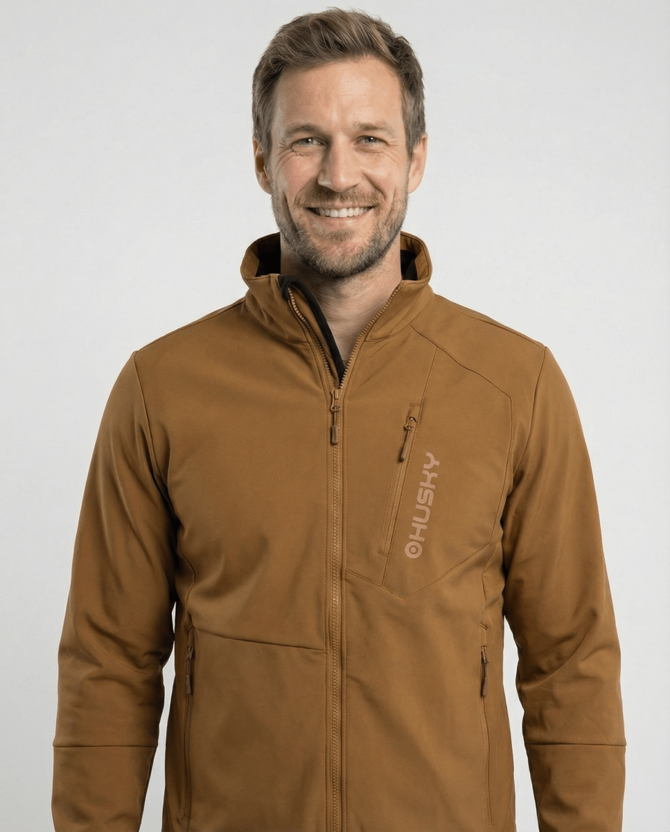 A warm men's softshell jacket made from high-quality soft material for everyday wear and various leisure activities on cool days.