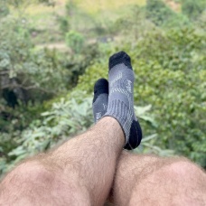 Low, thin socks that reach just above the ankle. They have a reinforced foot area for a soft tread and a reinforced toe area to prevent slipping. They are made of bamboo fibre for excellent breathability and absorption.