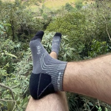 These Hiking socks are made of 66% bamboo fibre, which is a natural material characterized by excellent breathability, great absorption and thermoregulation properties, and a cooling effect. The fibre is also antibacterial and antiallergenic, so it provides comfort during normal everyday wear as well as when doing sports. The bamboo fibre is supplemented with 23% cotton, 8% polyamide and 3% elastane.