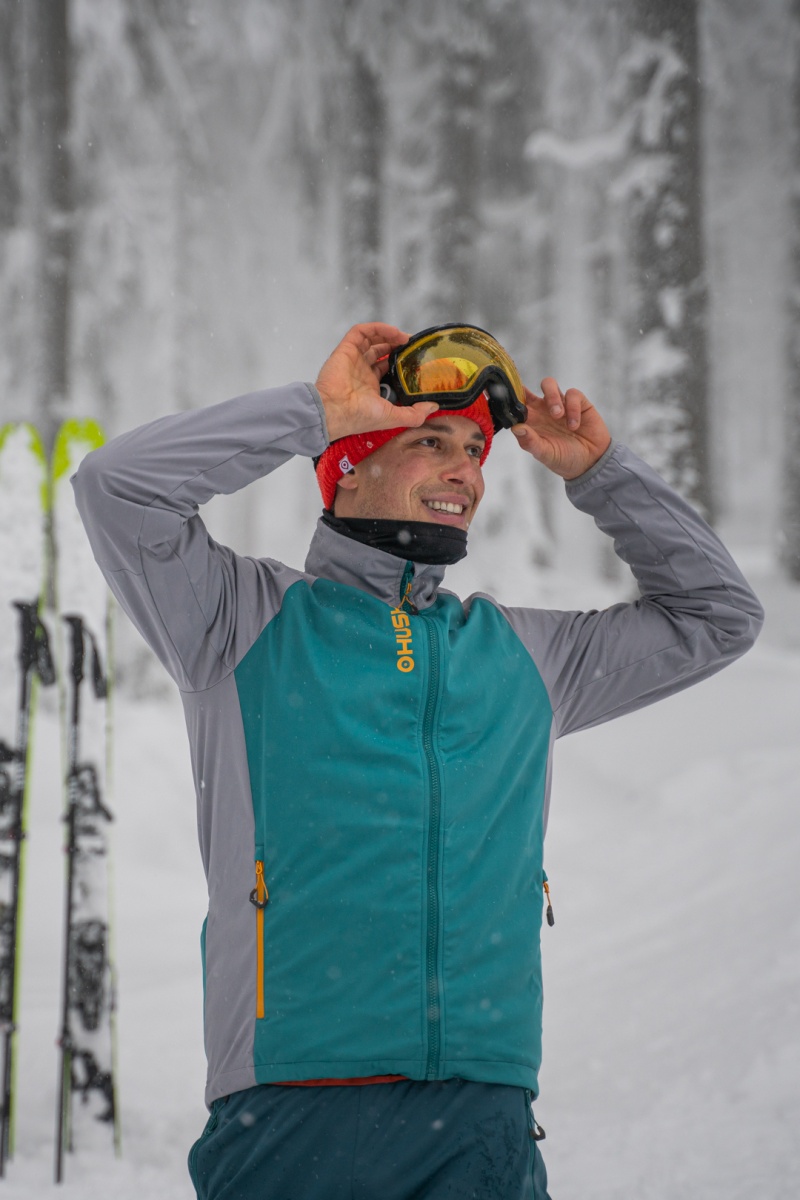 Men’s light softshell jacket for cross-country skiing, cycling, running, and other outdoor activities.