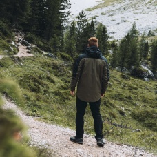 A functional hardshell membrane jacket for men suitable for challenging conditions as well as classic hiking and casual wear around town.