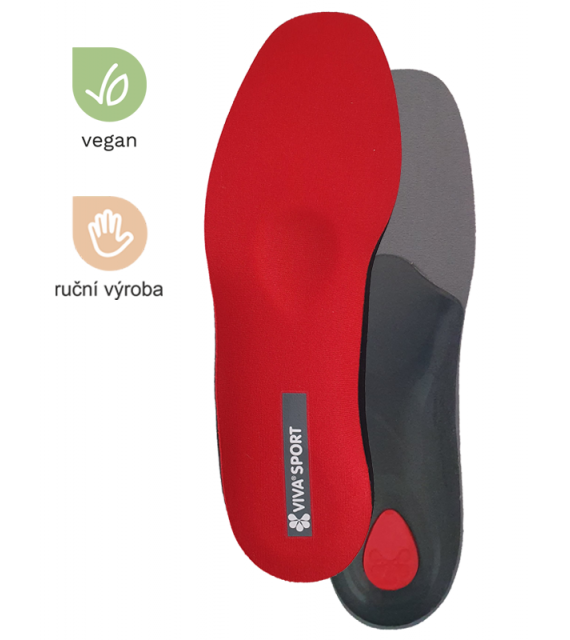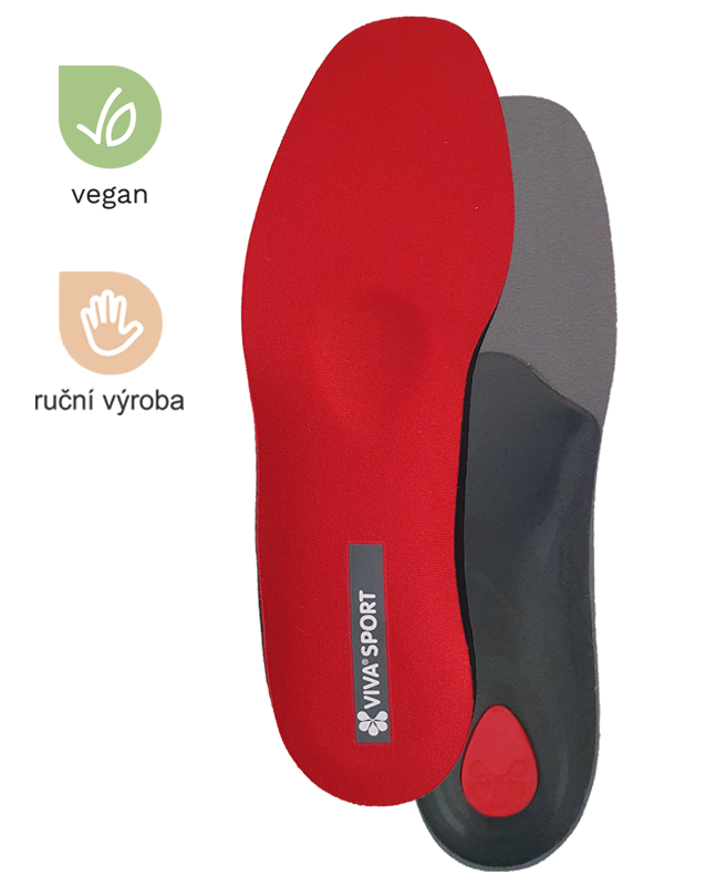 The premium orthopedic insole pedag VIVA SPORT is designed for everyone interested in sports and leisure activities, and for sports enthusiasts. The insole has its own patent for maximum comfort. The red surface of the insole is made of a special material that relieves tension and fatigue from the feet. 1) It absorbs shocks during movement. 2) It keeps feet dry, wicks away moisture. 3) The insole can be washed. 4) Suitable for sports and outdoor footwear.