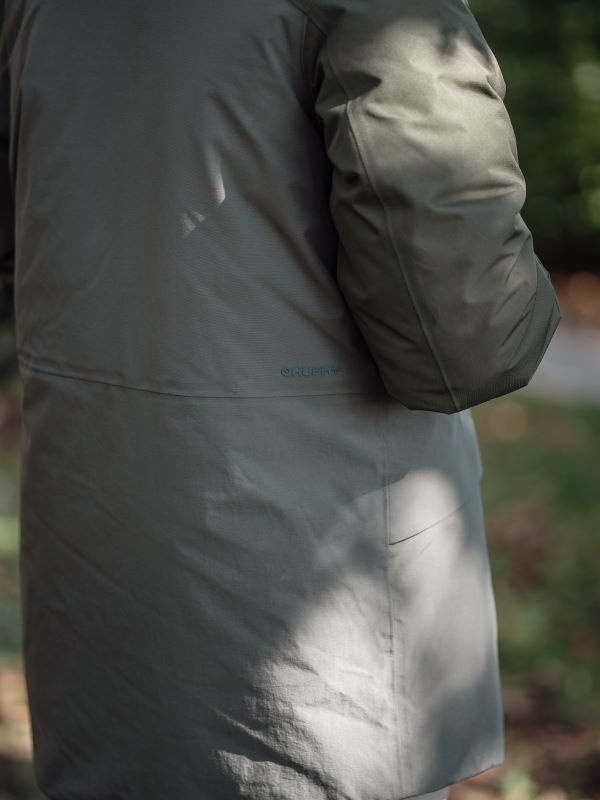 • The DWR water repellent treatment of the outer layer of the garment prevents moisture from seeping through; water beads up and immediately runs off the surface.