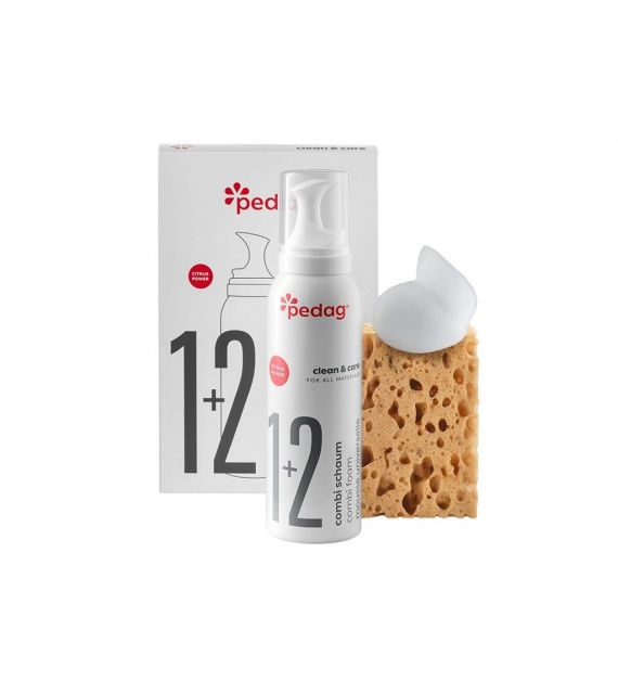 The foam with a sponge cleans and nourishes shoes, leather bags, leather jackets, and leather accessories in one step. The cleaner removes salt and water marks and can also handle water-soluble stains. Combi Foam Set perfectly prepares the material for subsequent care. The innovative propellant valve creates a fine and effective foam.