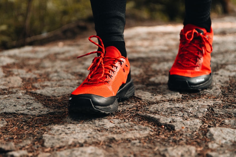 Superlight and breathable women's shoes for speed hiking with a knitted mesh upper.