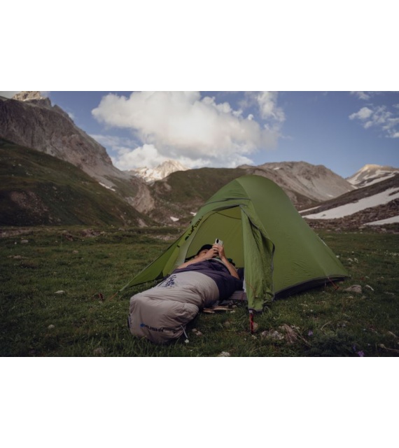 The premium sleeping bag Dopy -25 °C in the new design will provide comfort even in harsh climatic conditions. Made from the finest materials, it is extremely light, compact, and highly warm, making it particularly suitable as the perfect equipment for demanding expeditions.