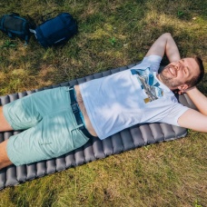 The Flary inflatable sleeping mat is suitable for bicycle touring, trekking and other outdoor activities where every gram counts. Thanks to its longitudinal chambers, it provides optimum weight distribution for even greater comfort and good thermal insulation. In this way it maximizes the quality of rest anywhere and at any time. To inflate it, you can purchase the AIRFLOW electric pump.