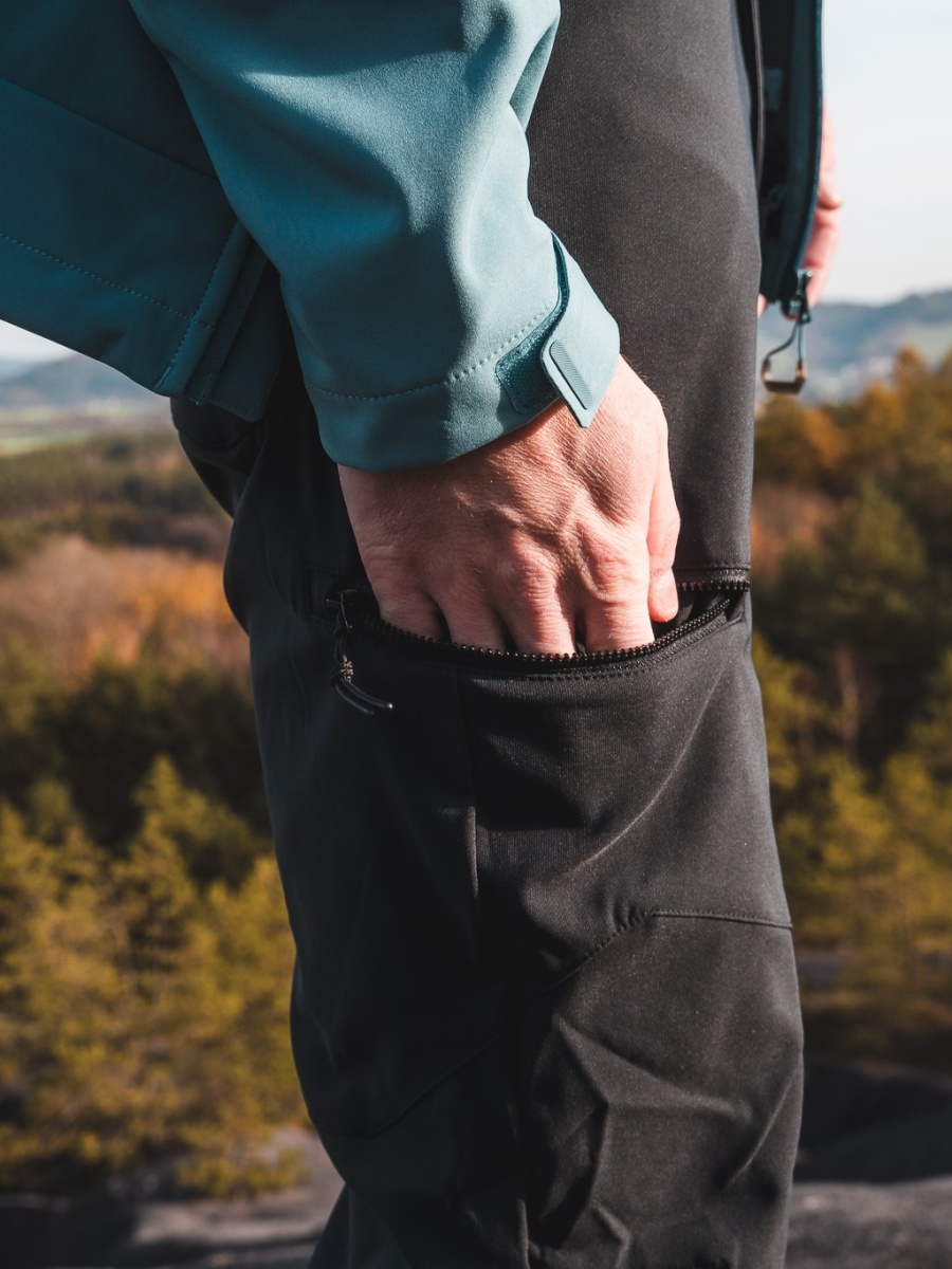 Breathable men’s softshell trousers made of durable material for outdoor and sports activities throughout the year.