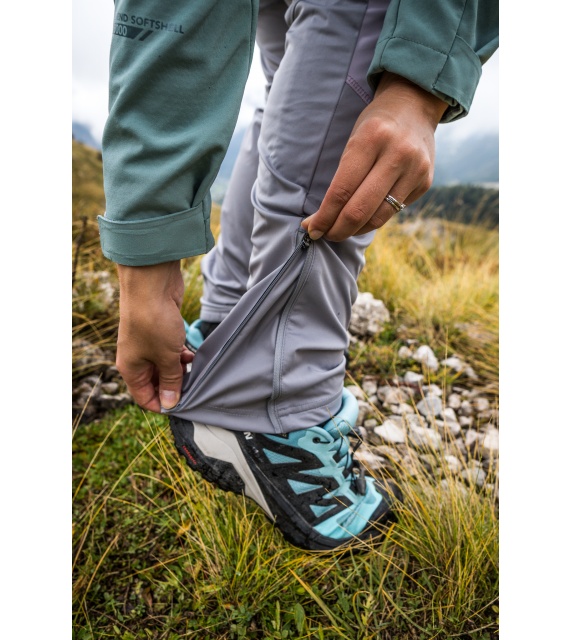 Ideal for running, cycling, or cross-country skiing in winter. Wear the women’s softshell trousers Kala L all year round for a variety of outdoor activities. These trousers are made of high-quality materials with high elasticity and breathability for adequate comfort even under higher physical stress.