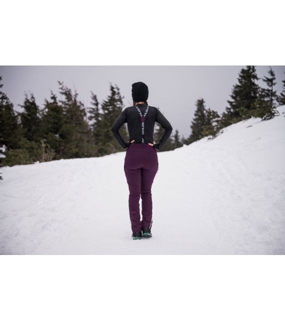 Breathable women’s softshell trousers made of high-quality durable material for cross-country skiing, cycling, or running.