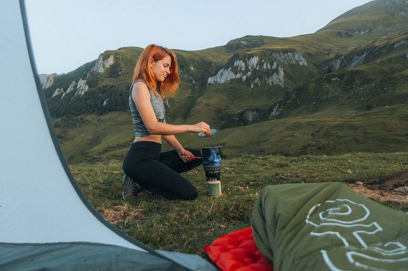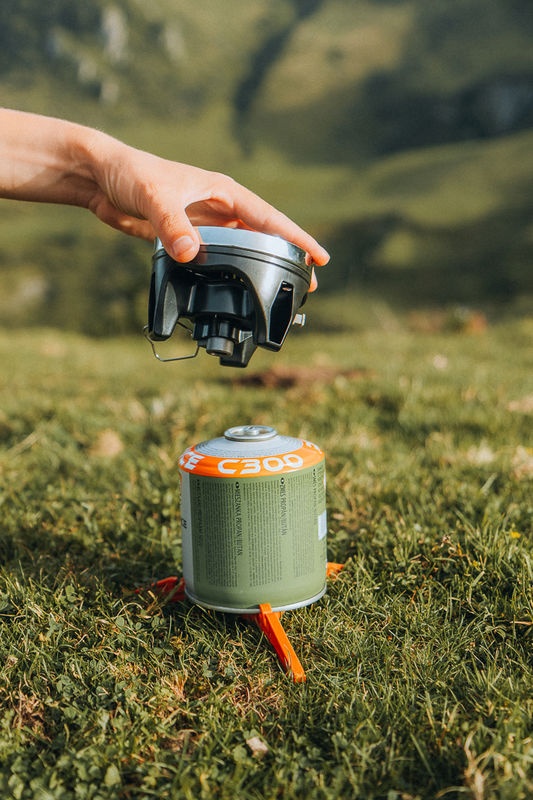 Thanks to the integrated windscreen and heat exchanger, Blaze not only cooks faster but also saves gas. The pot is designed to hold both the stove and a 230 g cartridge. The set also contains a plastic cartridge holder, lid, stove and adapter for common kinds of cookware.