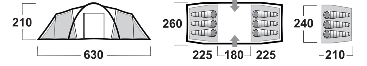 | Dimensions | (W × L × H) 260 × 630 × 210 cm |